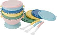 Badabulle Lot de 5 bols antidérapants de 330ml avec 5 couvercles 100% hermétiques et 3 cuillères souples : Amazon.fr: Cuisine et Maison