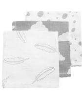HYDROFIELE MONDDOEKJES 3-PACK FEATHERS-CLOUDS-DOTS - GRIJS/WIT - 30X30CM - Décoration Babycenter