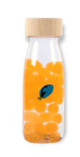 Connaissez-vous la sensation de marcher sur les fonds marins ? Vous pouvez voir comment le sable monte à travers les eaux turquoises et la détente vous inonde... Cette bouteille a un son et un effet tellement hypnotiques que votre mini ne pourra plus s'arrêter de jouer avec ça. Des coquillages, du sable, des boules d'h