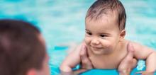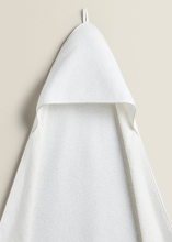 Cape de bain pour bébé 100 % coton. Modèle uni orné d’un motif piqué.