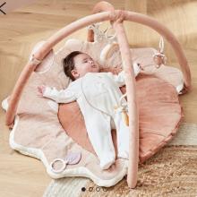 Le tapis d'éveil en veloudoux rose rembourré avec des bords protecteurs.