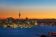 Arrivée en Nouvelle-Zélande et premier regard sur Auckland depuis le sommet de la Skytower… un verre à la main, pour fêter ça !