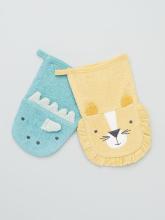 Un lot de 2 gants de toilettes, hyper mignons, pour lui apprendre les bons réflexes de façon ludique
