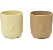 Petite tasse en silicone à 100 % conçue pour les petites mains,avec un citron en relief sur le côté.