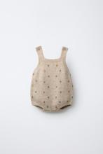 Body en maille avec col droit et bretelles. Fermeture boutonnée sur le devant et en bas. Détail petites boules.