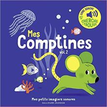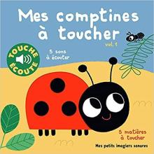 5 comptines célèbres chantées par des enfants accompagnés d'instruments acoustiques : "Une souris verte", "Les petits poissons", "Une poule sur un mur", "Petit escargot", "Coccinelle, demoiselle". Un livre complet, sonore et tactile, avec des puces et des matières variées à toucher.
