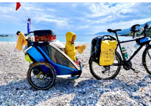 Porte-bébé latéral de Kidee, ergonomique et confortable. Réglable, sécurisé et idéal pour les parents actifs, il permet un portage sans douleur de bébé (9 mois à 3 ans).