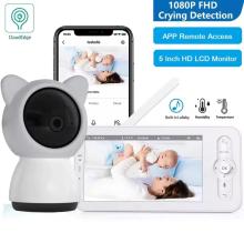 WOUWON-Moniteur vidéo pour bébé, caméra pour bébé, caméra pour bébé, nounou, HD, LCD 5 ", conversation bidirectionnelle, berceuses PTZ pour nouveau-né, 3MP, 2K