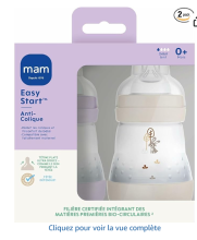 MAM Lot de 2 biberons Easy Start Anti-Colique 0+ mois débit lent (2 x 160 ml) Lilas + Sable – Biberon pour réduire les coliques et l'inconfort de bébé – Biberon bébé compatible avec l'allaitement