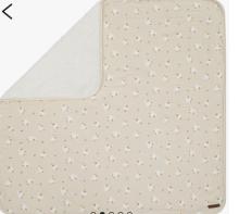 Cette couverture double face de 80 x 80 cm apportera chaleur et réconfort à bébé. Toute douce, elle possède une face en gaze de coton imprimée moutons et une face en sherpa uni.