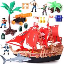 Ensemble de figurines de pirate pour enfants avec seau, jouets de pirate avec bateau, coffre au trésor, canons, bateau de pieuvre et autres accessoires