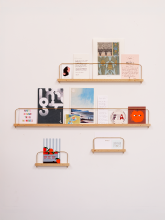Libérez votre créativité avec nos étagères Super-Poses pour exposer photos, illustrations et souvenirs. Changez facilement votre décoration sans vous limiter aux cadres traditionnels. La barre de laiton maintient divers formats, simplifiant la fixation avec des clous en laiton.