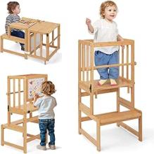 COSYLAND Tour D'observation Enfant 3 en 1 Montessori d'apprentissage Chaise Learning Tower Bébé Sécurisée avec Deux Dispositifs De Sécurité et Design Breveté pour 18 Mois À 3 Ans – Naturel : Amazon.com.be: Bébé et Puériculture