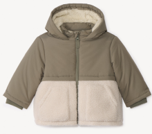 taille: 23 mois Doudoune bi-matière en toile et sherpa bouclette. Doublure corps en sherpa effet fausse-fourrure écrue. Bicolore vert kaki et écru. Capuche doublée sherpa. Col montant avec ouverture zippée intégrale sur l'avant. Deux poches plaquées en sherpa bouclette. Poignets resserrés en bord-côtes. Étiquette nominative à l'intérieur.