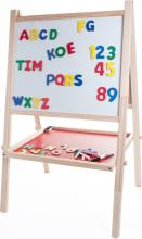 Tableau noir en bois. Comprend des accessoires tels que la craie, la gomme à effacer et l'alphabet magnétique en bois et les chiffres. Dimensions 86 x 54 x 42 cm