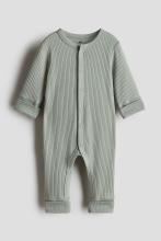 Combinaison côtelée en jersey de coton très doux. Modèle à manches longues avec fermeture pressionnée devant, se prolongeant le long des jambes. Manches et jambes terminées par bord repliable présentant une grande longueur afin de s’adapter à la croissance de l’enfant.
