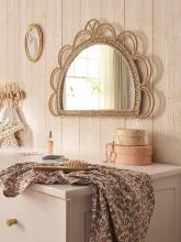 Un miroir coiffeuse en corde de papier pour une déco bohème et naturelle. Un accessoire déco qui trouvera sa place dans la chambre de votre fille.