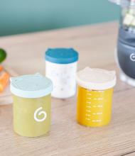 Petits pots bébé ultra résistants pour conserver & transporter les préparations de bébé et toute la famille. Passent au congélateur, micro-ondes, four, chauffe biberon, bain marie.