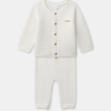 Pour les petits curieux, adapté aux journées fraîches. Pantalon et gilet en laine et coton, ouverture par boutons. Taille 1 mois ou 3 mois.