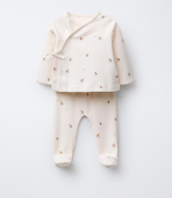 Ensemble deux pièces. T-shirt avec col V et manches longues. Fermeture croisée avec boutons-pression et nœud. Finitions en dentelle. Legging avec taille élastique. Imprimé faons. Tissu 100 % coton.