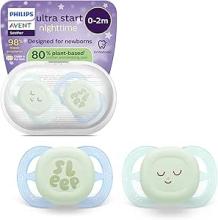 Philips Avent Sucettes de nuit ultra start - Orthodontiques, pour nouveau-nés, phosphorescentes, tétine symétrique en silicone souple, sans BPA, avec étui de stérilisation, lot de 2, SCF075/18 : Amazon.com.be: Épicerie