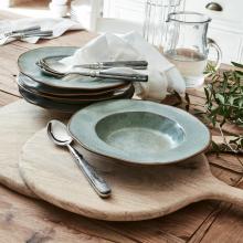 Un service d'inspiration méridionale au charme authentique. En grès de grande qualité. Avec leur forme irrégulière et leur bord contrastant, ces assiettes sont de véritables objets d'exception. Un velouté de volaille ? Une potée ? Une bouillabaisse ? Que…