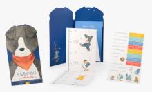 Une toise en carton pour y noter les étapes de vie de Mini Troussier. Autocollants fournis. Une fois plus grand, nous pourrons replier la toise en carnet et conserver ces souvenirs.