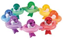 Elk van deze vrolijke Do Re Mi Dolfijnen van TOMY speelt zijn eigen muzieknoot wanneer je erop tikt! Hang ze aan elkaar in een drijvende circel of lijn en