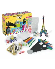LOUP EN VOYAGE COFFRET MULTI ACTIVITES 5 bricolages à réaliser : boule à neige, masque, figurine en plâtre, tour Eiffel velours et pyramide en sable. Plâtre...