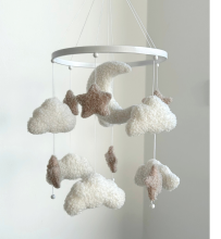 Avec Stella le faon et Joe le dragon. Porte, volants, clochette et bourdon en tissu.. Ce panneau d'activités stimulantes s'accroche au parc de bébé.