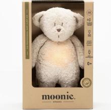 Découvrez l'ours magique Sable de la marque Moonie. L'ours magique offrira à votre enfant des nuits de rêve. Cette nouvelle veilleuse en coton biologique diffuse à la fois un son apaisant et une lumière do...