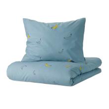 VÄNKRETS housse de couette et 1 taie, motif banane bleu, 150x200/50x60 cm Une housse de couette et une taie d'oreiller avec un motif banane sur fond bleu. Tissées dans un mélange de coton/viscose qui offre une température de couchage idéale tout au long de la nuit.