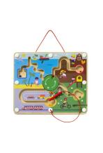 Ce labyrinthe magnétique ville à emmener partout invite votre enfant à manipuler un stylet en bois aimanté pour déplacer des billes dans cette ville imaginaire. Une fois à l'aise, il peut ramener chaque bille dans une zone de couleur ou à un endroit donné, ce qui développe sa coordination oeil/main. Quand ses gestes s'affinent, il peut également faire tourner la roue au centre du labyrinthe. Cette activité développe sa précision, sa concentration et constitue une première étape vers l'apprentissage de l'écriture !