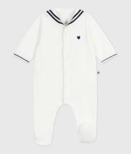 Ce pyjama raffiné avec un col vareuse, est idéal pour un cadeau de naissance. Ouverture à bouton-pressions sur l'avant et à l'entrejambe. 100%coton