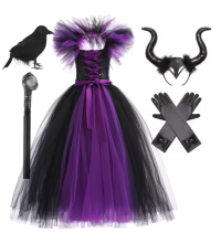 Girl Witch Halloween Costume Maleficent Cosplay Dress Deluxe Children Fancy Christening Black Gown Disney Princess Costume - AliExpress 1501