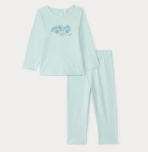Pyjama bébé en molleton 97% coton fibres issues de l'agriculture biologique, 3% viscose.