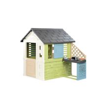 + Eenvoudig te monteren. + Voor kindjes vanaf 2 jaar. +Ideaal voor meer tijd in de tuin!- Zomers speelhuisje met half deurtje, keuken, lamellen, schuifluikjes...- Accessoires: 2 glazen, 2 bordjes, bestek, 1 stoofpot & 2 worstjes.- Met schattige diertjes op de muren!- UV-bestendig huisje: zo verkleurt je huis niet i