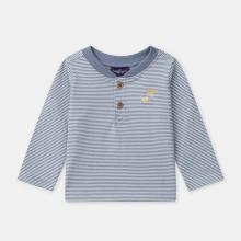Idéal pour les enfants actifs, ce t-shirt rayé bleu-gris et écru se porte facilement au quotidien. Il est confectionné en jersey doux avec un imprimé animal sur le buste. L’ouverture avant par boutons et le biais uni à l’encolure assurent confort et praticité. T-shirt à manches longues bleu gris et écru : Imprimé anima