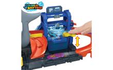 Zoals te zien in de Netflix-serie 'Let's Race', is de Hot Wheels City Autowasserette overgenomen door een enorme haai die zin heeft in kleurveranderende ac