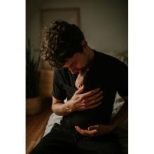 Le T-Shirt peau à peau pour homme de Vija Design permet d'avoir bébé tout contre vous et de le rassurer.