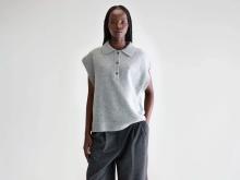 Pull sans manches oversize en laine mélangée gris clair avec un col polo classique. Découvrez les dernières tendances pour femmes.