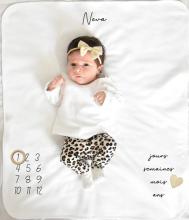 Fait avec amour en France 🇫🇷 NOUVEAU : identifiez-nous sur les photos de votre bébé sur sa couverture étape 20h35 tous les mois jusqu’à son premier anniversaire et nous vous offrirons un bon d’achat ! (sur demande en message privé ou par mail) Couverture légère 92% coton 8% elasthanne, cousue et imprimée en FranceDimensions : 70x60cm Personnalisable au prénom de l’enfant Motif et texte gris anthracite.