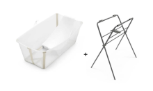 Choisissez la baignoire bébé Flexi Bath sandy beige avec son transat et son support associé de Stokke.