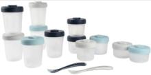 BÉABA, Lot de 12 Portions Conservation et 2 Cuillères Silicone, Clip, Pots empilables et emboîtables, 100% hermétique, Graduation, Congélation, Lait Maternel (2x90 ml & 4x150 ml & 6x250ml), Storm : Amazon.com.be: Bébé et Puériculture