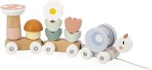 Janod - Train en Bois à Tirer Escargot - 2 Wagons et 10 Pièces Dont Hochet Amovible - Jouet d'éveil à Tirer - Bois FSC et Peinture à l'eau - Développer la Motricité Fine - Dès 12 Mois,