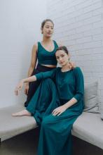 On adore l'élégance décontractée de ce T-shirt femme éthique longueur crop top : jersey léger de coton bio couleur bleu-vert Emerald profond à la douceur et au confort irrésistibles, coupe ample casual et manches 3/4 travaillées pour un joli contraste empreint de raffinement.Faites-le glisser vers l'arrière pour révéler sagement votre ventre ou dévoilez une épaule, une pièce féminine à la coupe confortable, compatible avec toutes vos tenues : yoga, loungewear, sportswear chic, ou habillé, tout est permis !On l'aime aussi bien avec un jean qu'en total look comme Sobina - 1,65m - avec le Pant