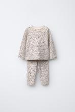 Ensemble deux pièces. T-shirt à col rond et manches longues. Fermeture par boutons-pression sur l'épaule. Legging avec taille élastique. Imprimé animal print.