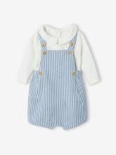 Ensemble naissance body + salopette courte rayée bleu ciel - Vertbaudet