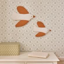 Lot de 2 oiseaux en coton molletonné de tailles différentes. Déco murale originale et élégante. Se fixent à l'aide d'une petite encoche au dos. Grand oiseau : H.35 x l.30 cm environ Petit oiseau : H.26,5 x l.23 cm environ