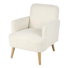 Fauteuil bouclettes blanches et pieds en bois de hêtre Honey sur Maisons du Monde. Piochez parmi nos meubles et objets déco et faites le plein d’inspiration !